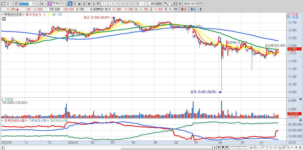 30.맥쿼리인프라 11,900원 ▲ 1.02% (KOSPI, 088980)