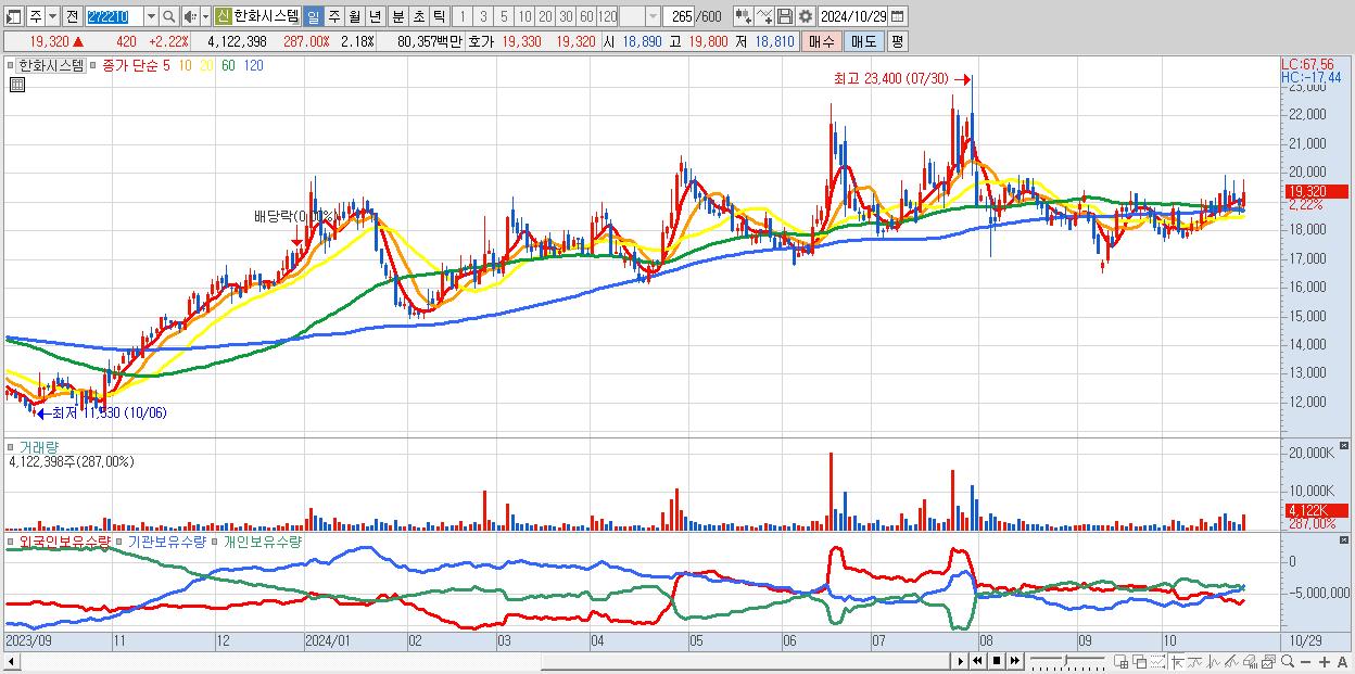 - 한화시스템 (19,320원 ▲ 2.22% , 시총: 36,499억, 외국인 순매수 거래금:66억)