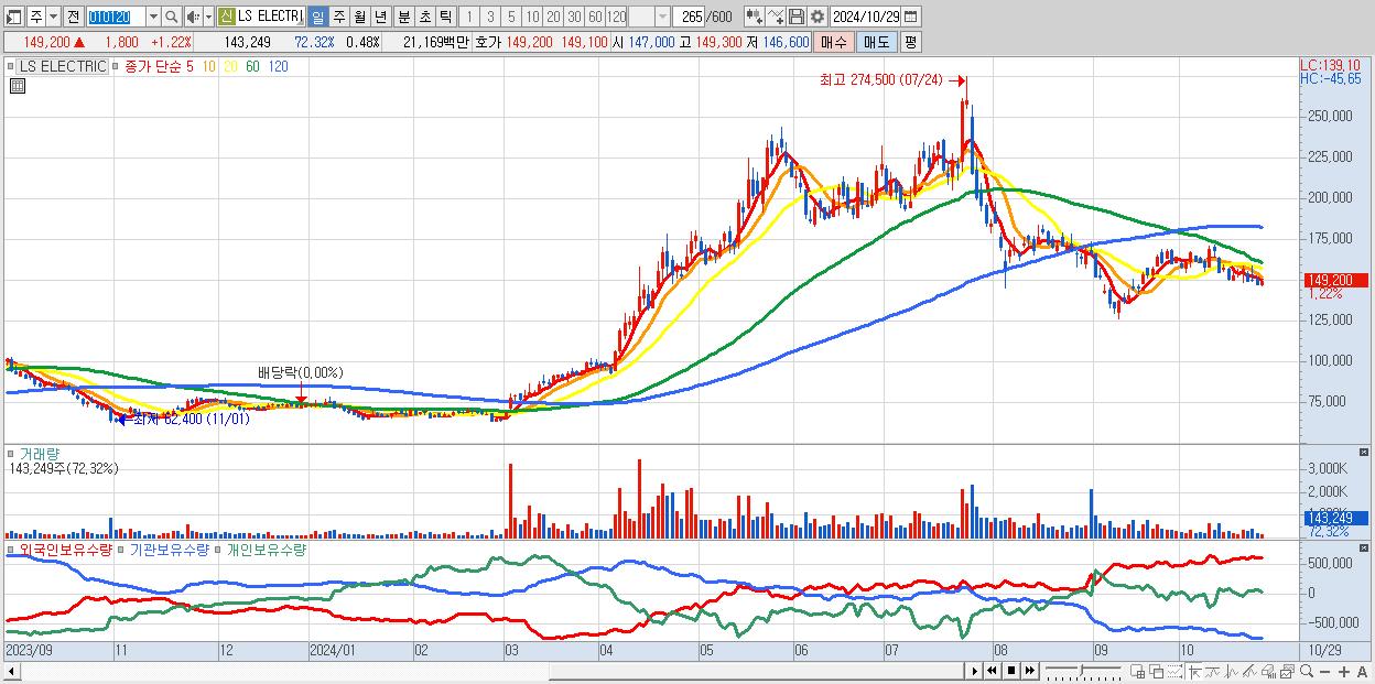 - LS ELECTRIC (149,200원 ▲ 1.22% , 시총: 44,760억, 외국인 순매수 거래금:37억)