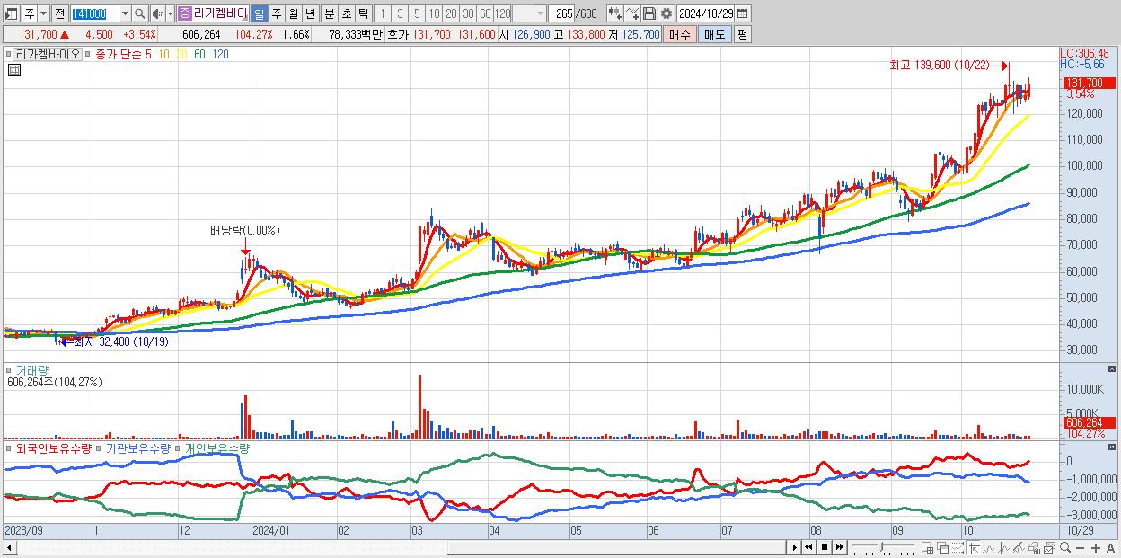 - 리가켐바이오 (131,700원 ▲ 3.54% , 시총: 48,216억, 외국인 순매수 거래금:110억)