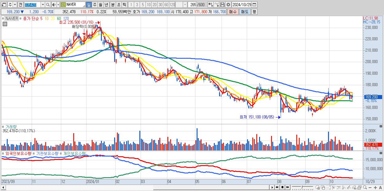 29.NAVER 169,200원 ▼ -0.7% (KOSPI, 035420)