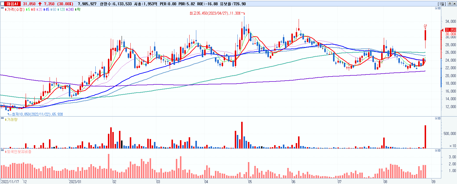 2.마음AI 31,850원 ▲ 30% (KOSDAQ, 377480)