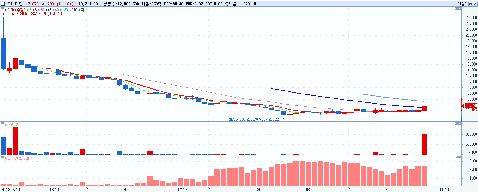 30.모니터랩 7,870원 ▲ 11.16% (KOSDAQ, 434480)