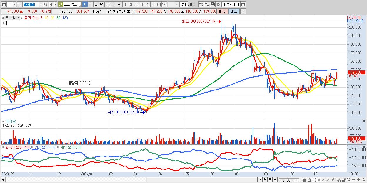 시총: 1,419,605억 거래량: 3,580,400 거래대금:6,929억 업종:전기전자