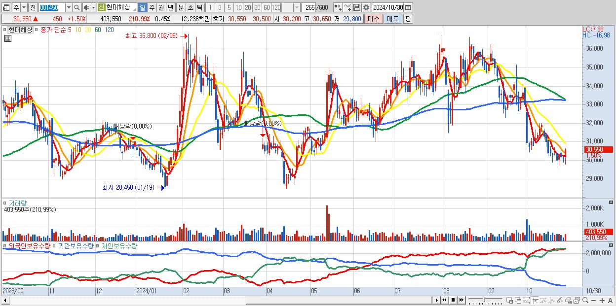 - 현대해상 (30,550원 ▲ 1.5% , 시총: 27,312억, 외국인 순매수 거래금:27억)