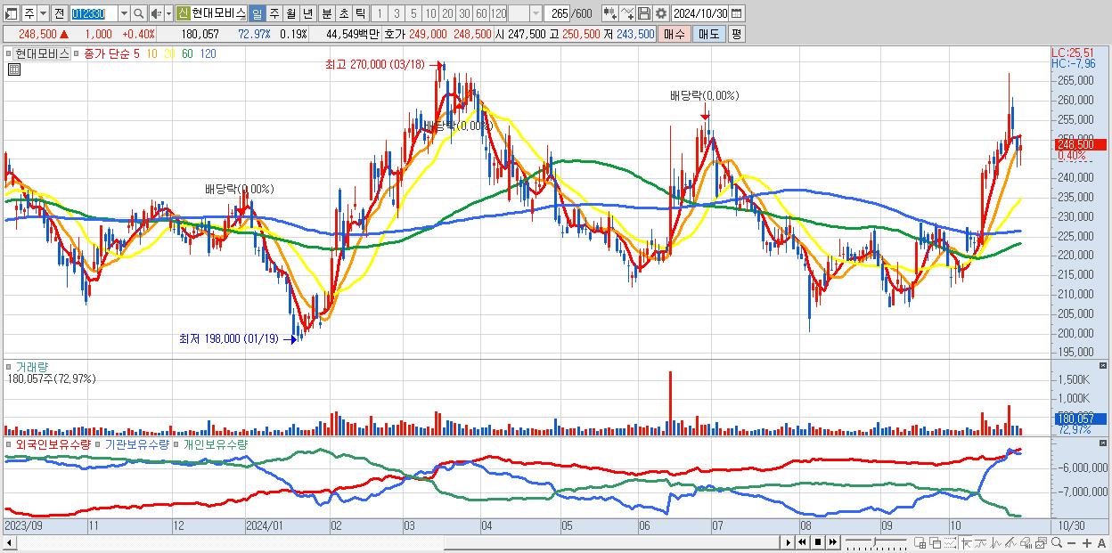 - 현대모비스 (248,500원 ▲ 0.4% , 시총: 231,093억, 외국인 순매수 거래금:78억)