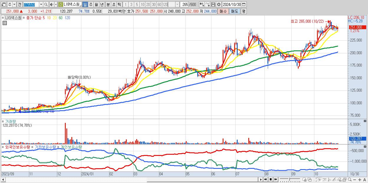 - LIG넥스원 (251,000원 ▲ 1.21% , 시총: 55,220억, 외국인 순매수 거래금:30억)