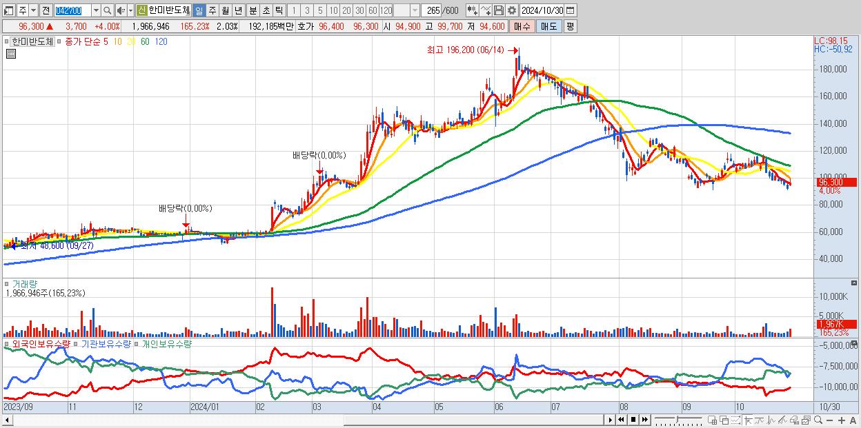 - 한미반도체 (96,300원 ▲ 4% , 시총: 93,405억, 외국인 순매수 거래금:208억)