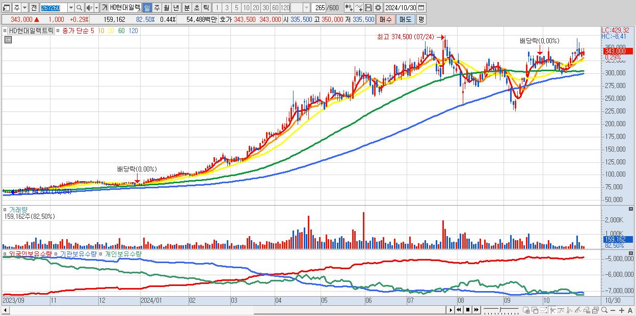 - HD현대일렉트릭 (343,000원 ▲ 0.29% , 시총: 123,642억, 외국인 순매수 거래금:80억)