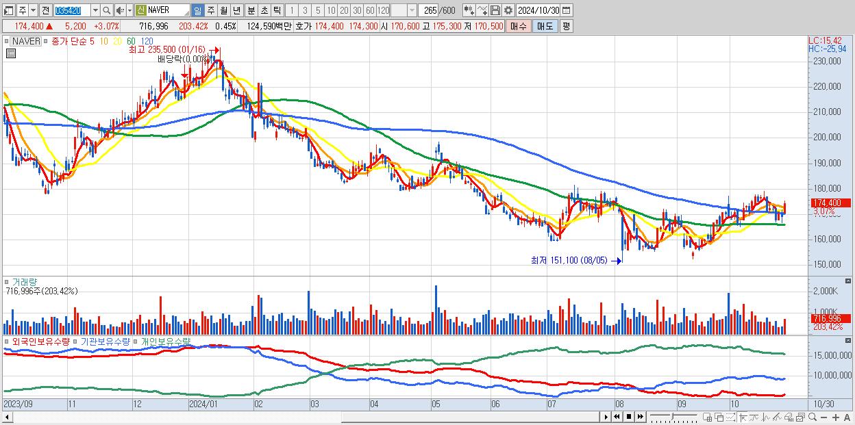 2.NAVER 174,400원 ▲ 3.07% (KOSPI, 035420)