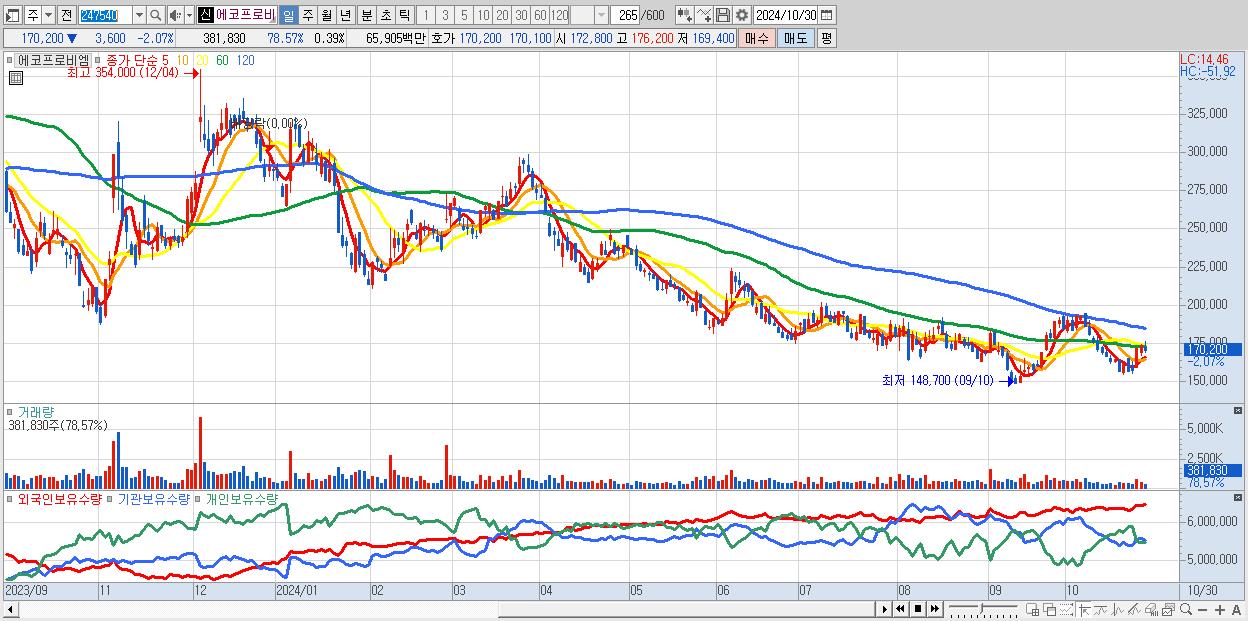 - 에코프로비엠 (170,200원 ▼ -2.07% , 시총: 166,458억, 외국인 순매수 거래금:63억)