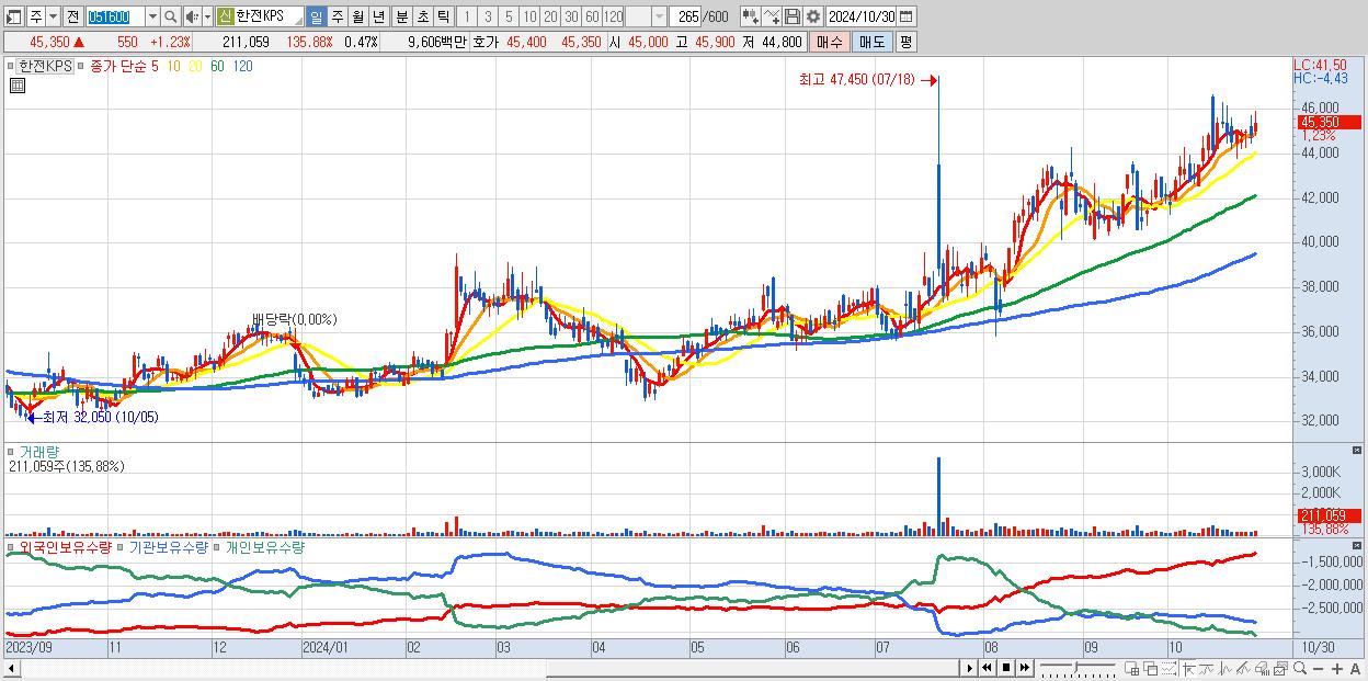 - 한전KPS (45,350원 ▲ 1.23% , 시총: 20,408억, 외국인 순매수 거래금:34억)