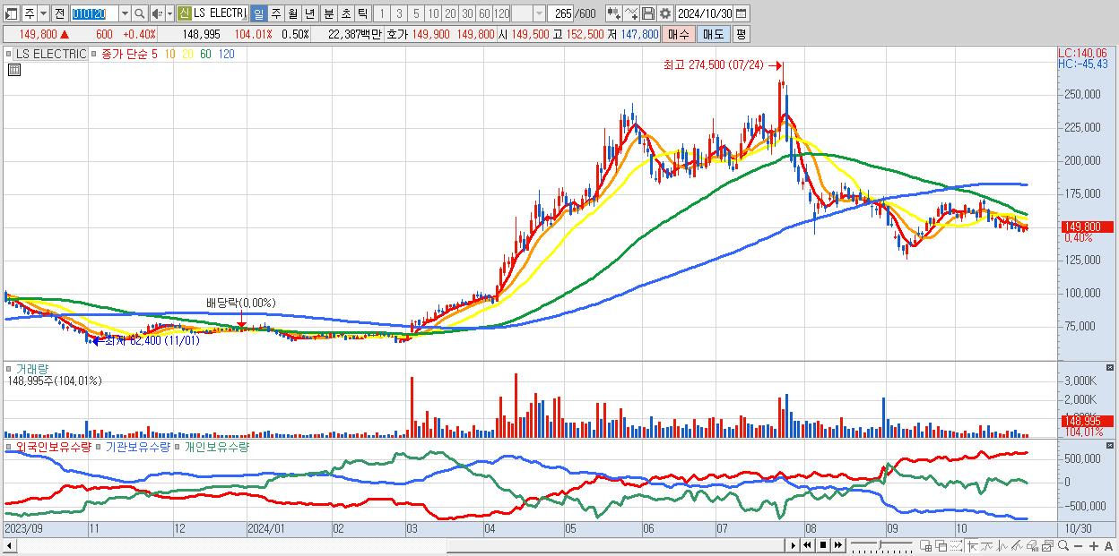 - LS ELECTRIC (149,800원 ▲ 0.4% , 시총: 44,940억, 외국인 순매수 거래금:41억)