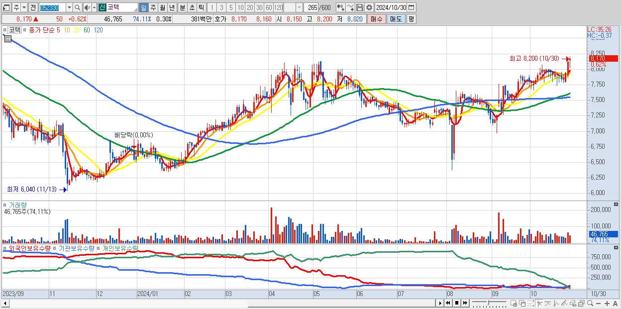 코텍 8,170원 ▲ 0.62% (KOSDAQ, 052330)