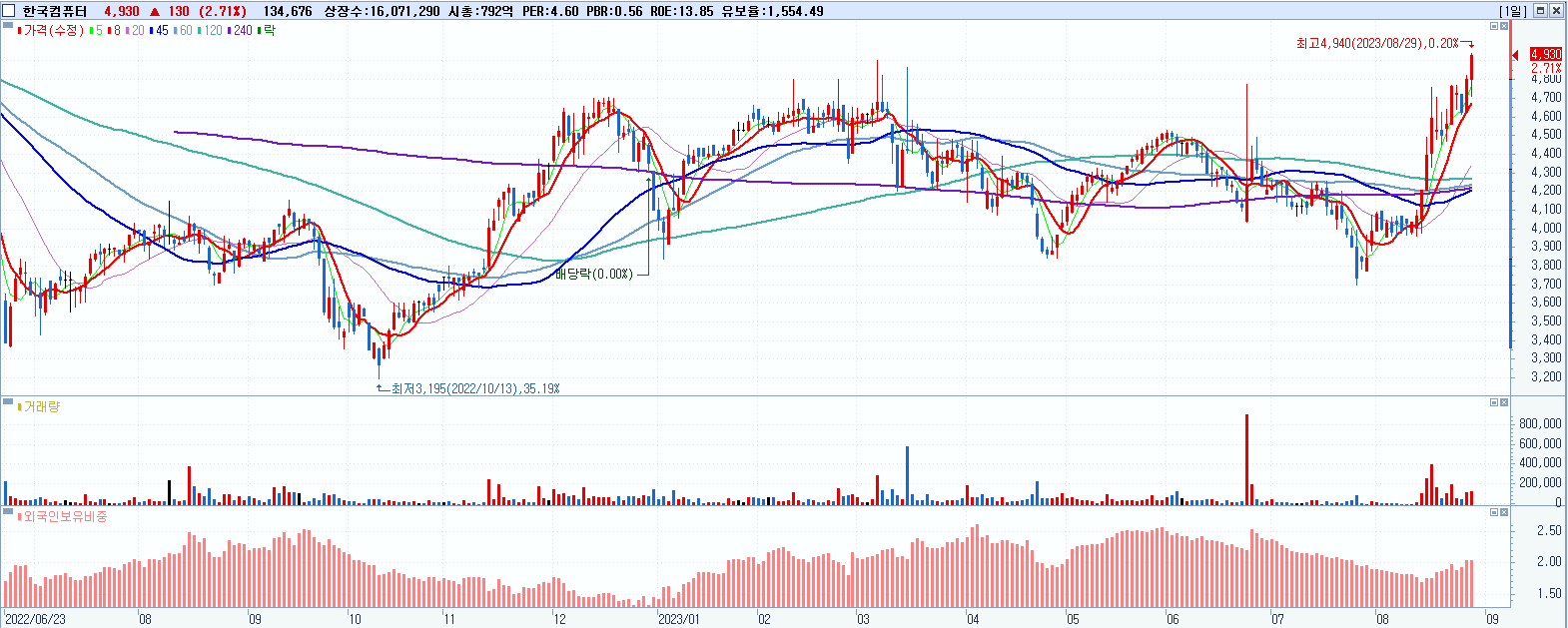 한국컴퓨터 4,930원 ▲ 2.71% (KOSDAQ, 054040)