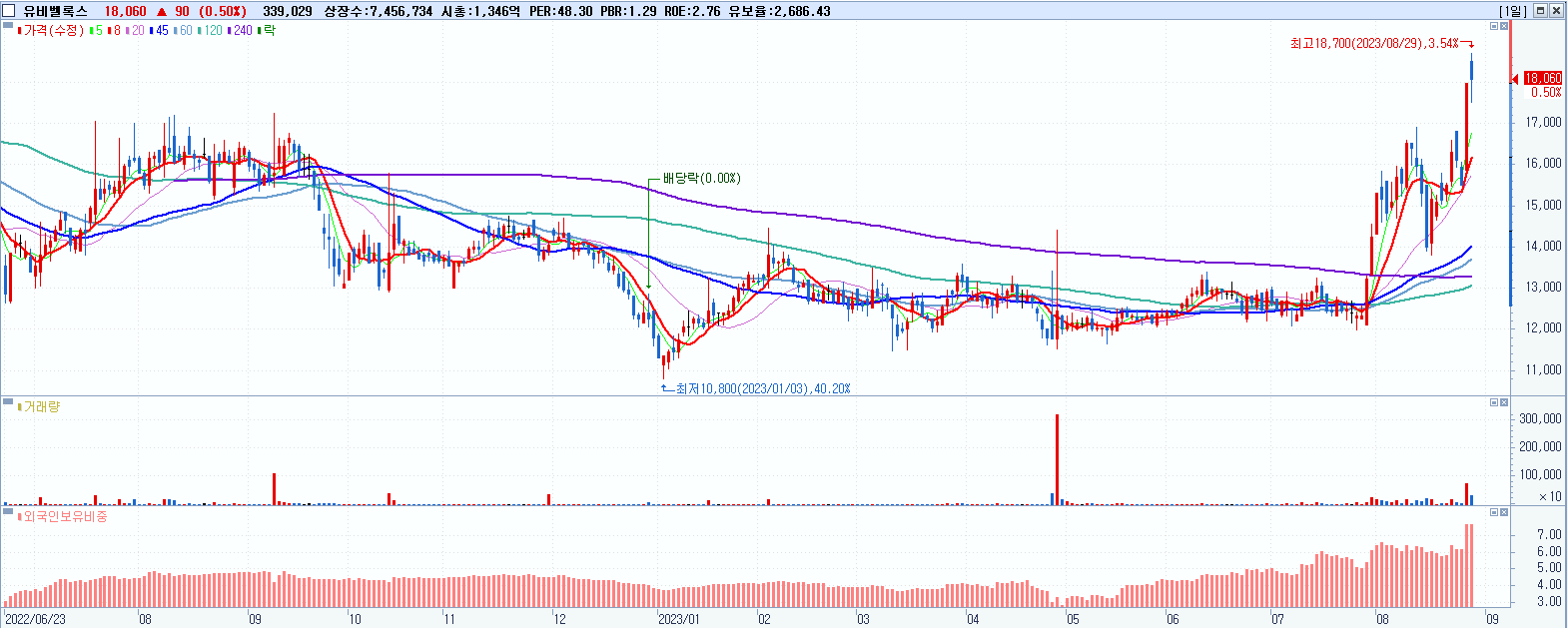 유비벨록스 18,060원 ▲ 0.5% (KOSDAQ, 089850)