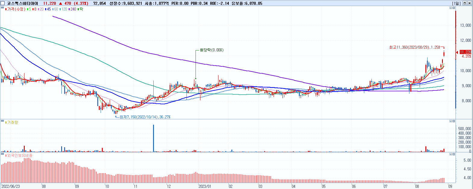 시총: 8,509억 거래량: 1,464,779 거래대금:578억