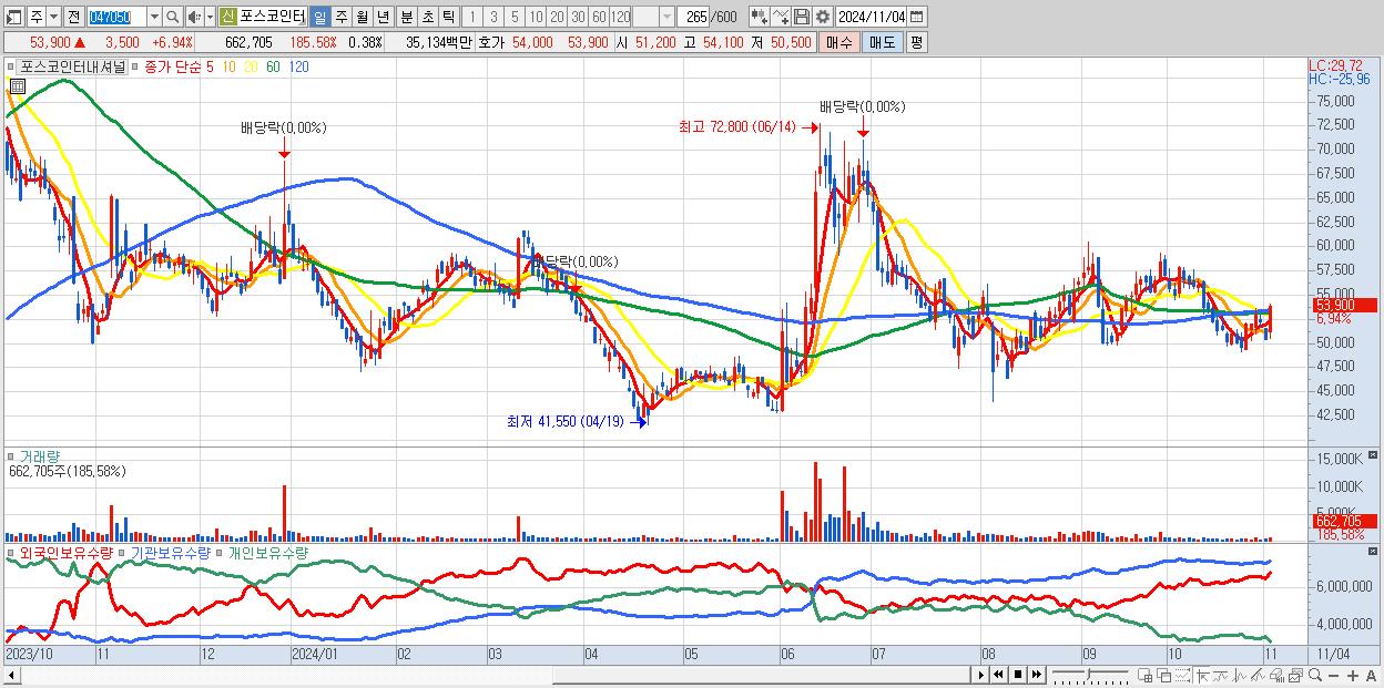 - 포스코인터내셔널 (53,900원 ▲ 6.94% , 시총: 94,822억, 외국인 순매수 거래금:90억)