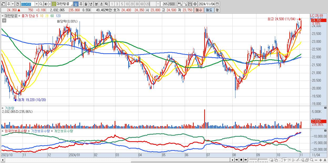 대한항공 24,350원 ▲ 3.18% (KOSPI, 003490)