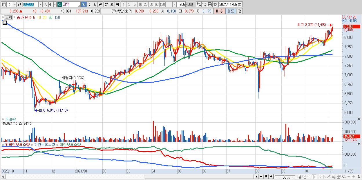 코텍 8,290원 ▲ 0.48% (KOSDAQ, 052330)