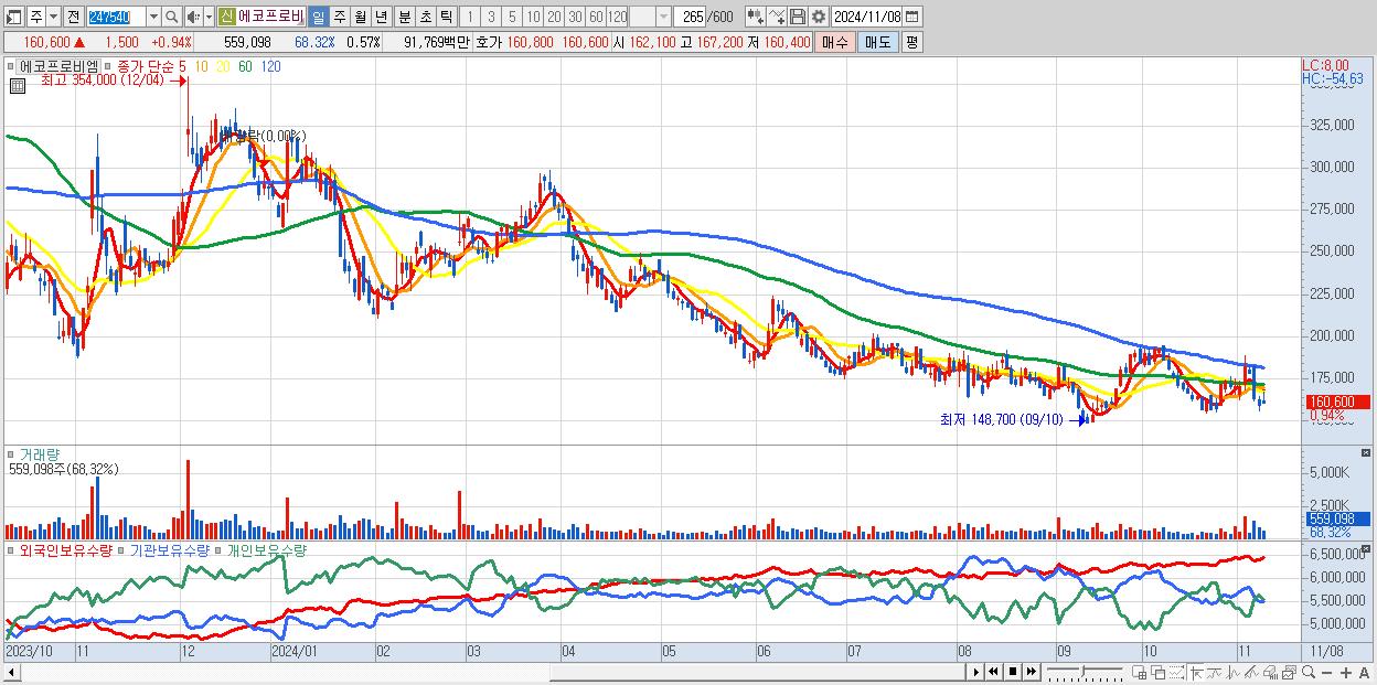 - 에코프로비엠 (160,600원 ▲ 0.94% , 시총: 157,069억, 외국인 순매수 거래금:176억)