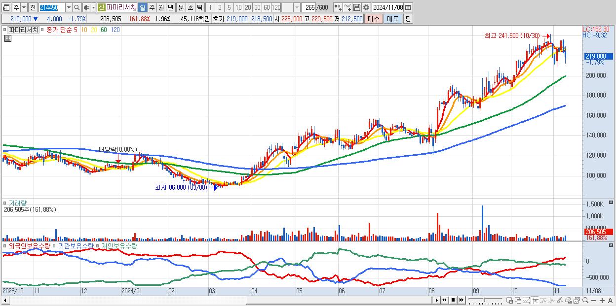 | 2024-11-08 | 1,391억 | -10억 | 109억 | 8억 | -1,499억 |