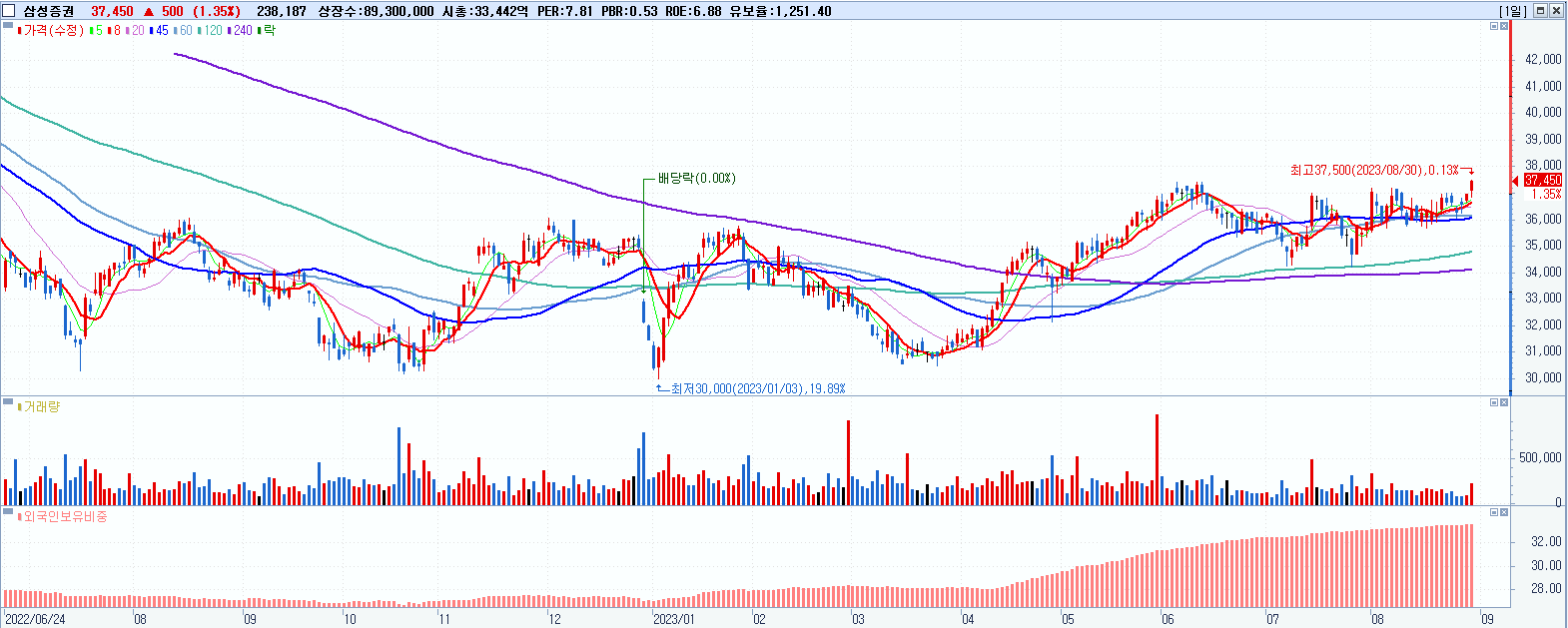 삼성증권 37,450원 ▲ 1.35% (KOSPI, 016360)