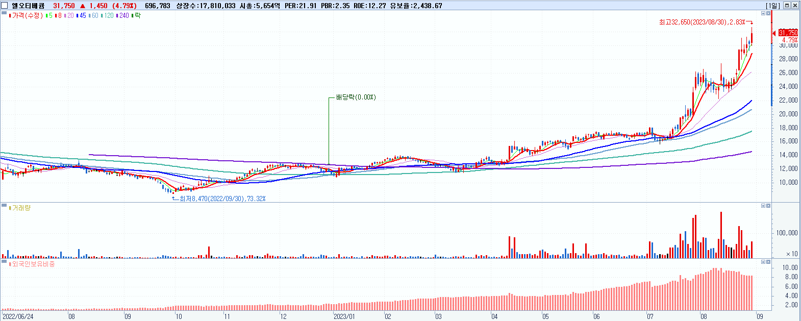 | 52주 신고가 종목 정리(2023년 8월 31일) 종가기준 (6) | 2023.08.31 |