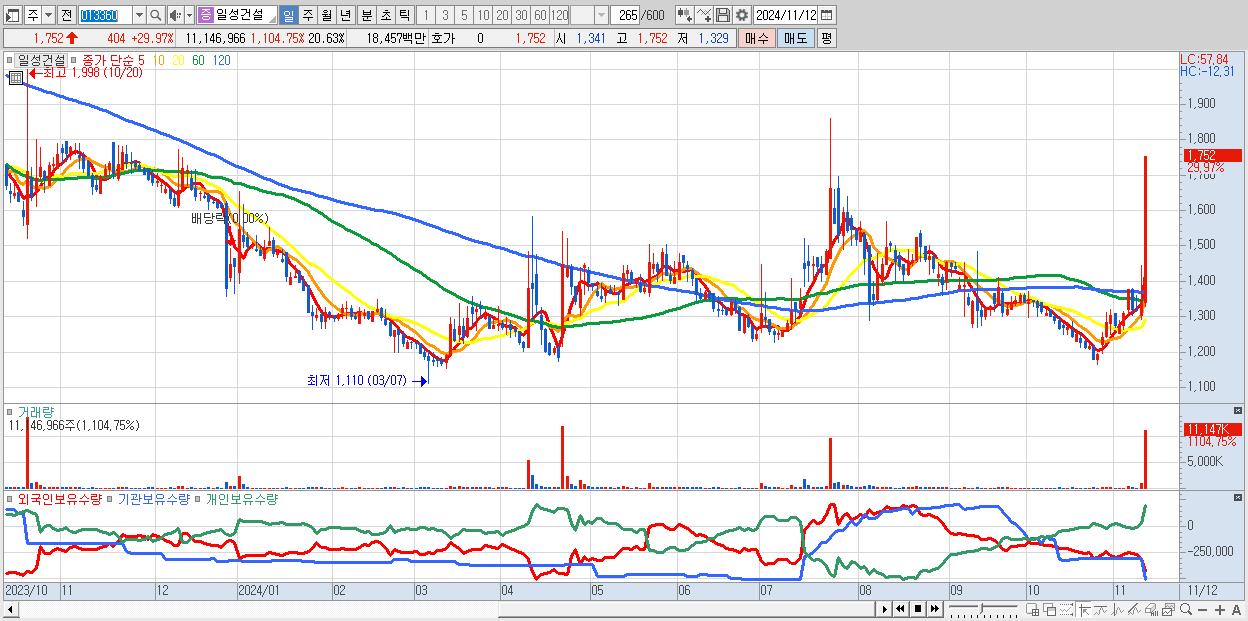 2.일성건설 1,752원 ▲ 29.97% (KOSPI, 013360)