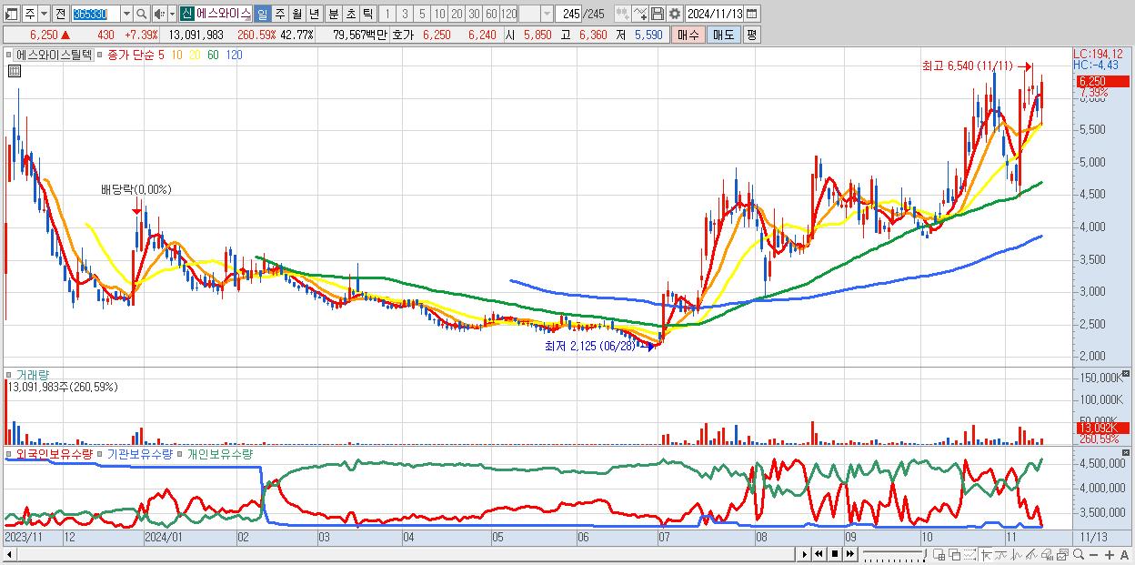 - 에스와이스틸텍 (6,250원 ▲ 7.39% , 시총: 1,913억, 거래량: 13,091,983, 거래대금:796억)