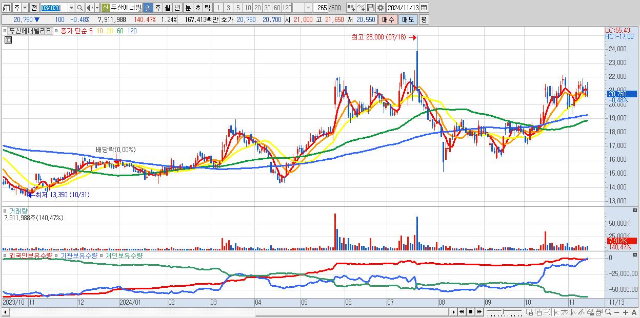 - 두산에너빌리티 (20,750원 ▼ -0.48% , 시총: 132,916억, 거래량: 7,911,988, 거래대금:1,674억)