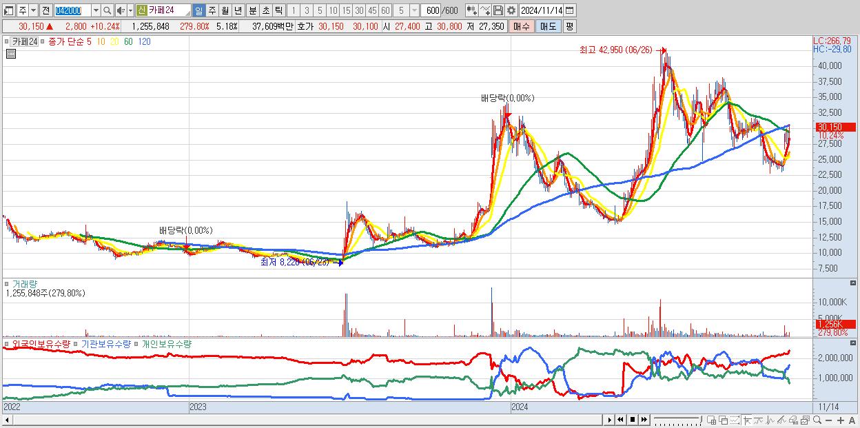 30.카페24 30,150원 ▲ 10.24% (KOSDAQ, 042000)