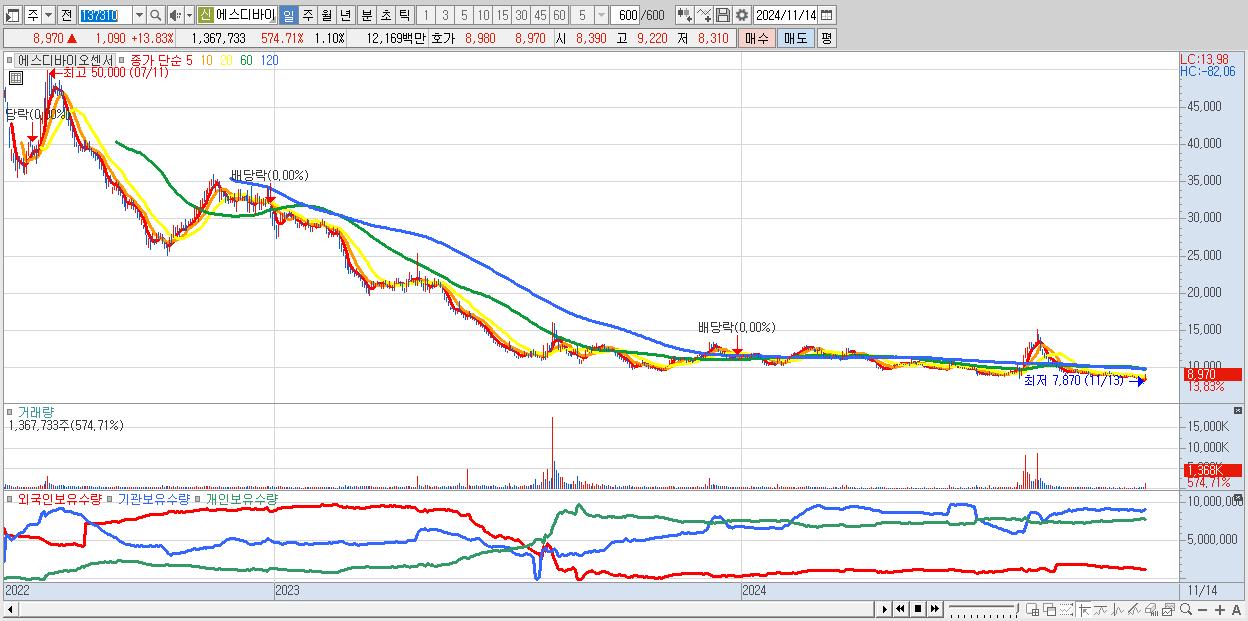 - 에스디바이오센서 (8,970원 ▲ 13.83% , 시총: 11,166억, 거래량: 1,367,733, 거래대금:122억)