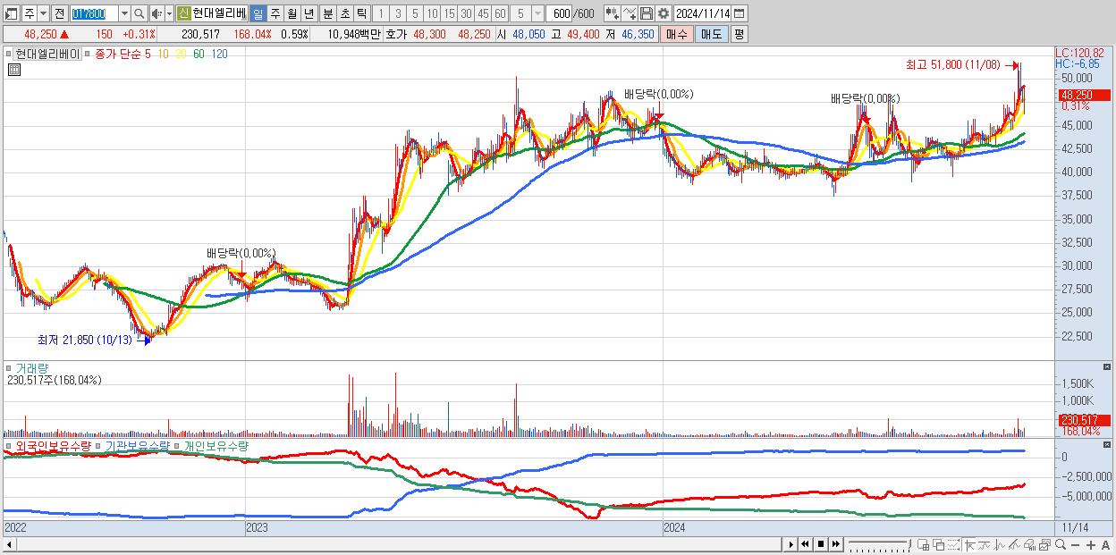 30.현대엘리베이 48,250원 ▲ 0.31% (KOSPI, 017800)