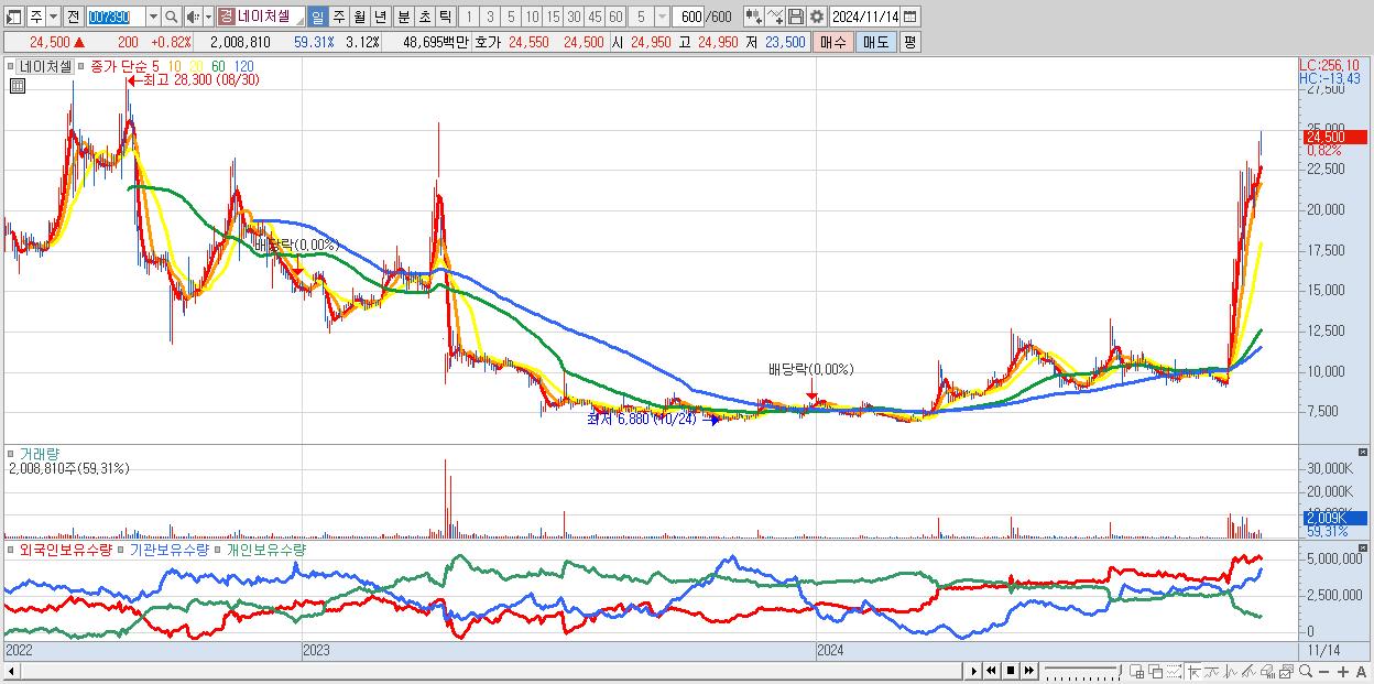 네이처셀 24,500원 ▲ 0.82% (KOSDAQ, 007390)