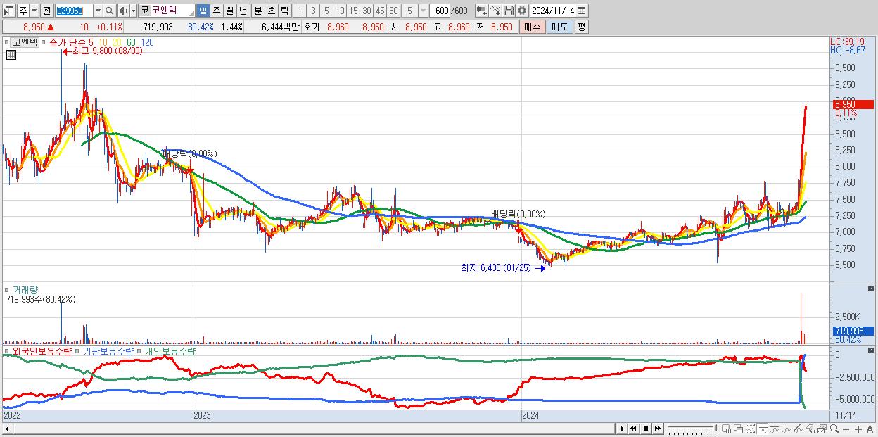 코엔텍 8,950원 ▲ 0.11% (KOSDAQ, 029960)