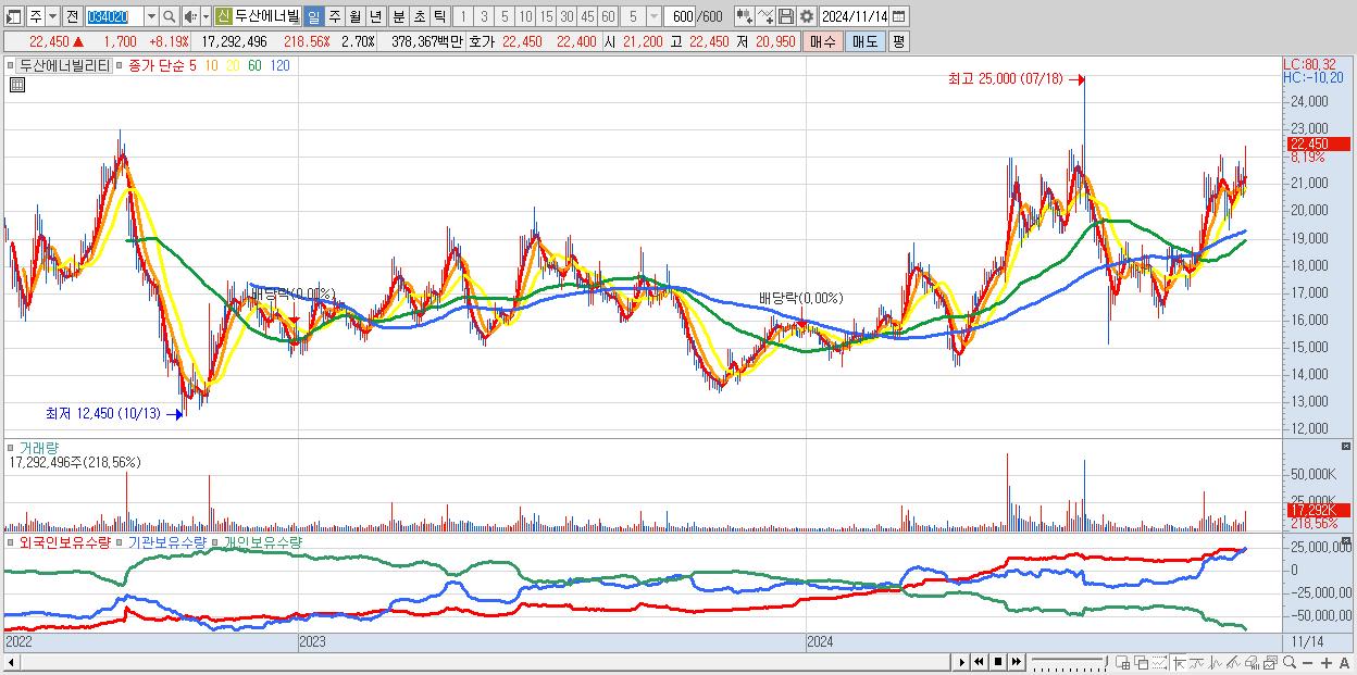 - 두산에너빌리티 (22,450원 ▲ 8.19% , 시총: 143,806억, 거래량: 17,292,496, 거래대금:3,784억)