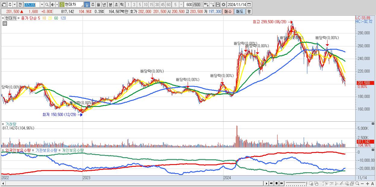 - 현대차 (201,500원 ▲ 0.8% , 시총: 421,974억, 거래량: 817,142, 거래대금:1,646억)