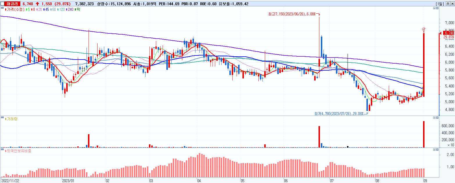 시총: 1,019억 거래량: 7,383,102 거래대금:468억