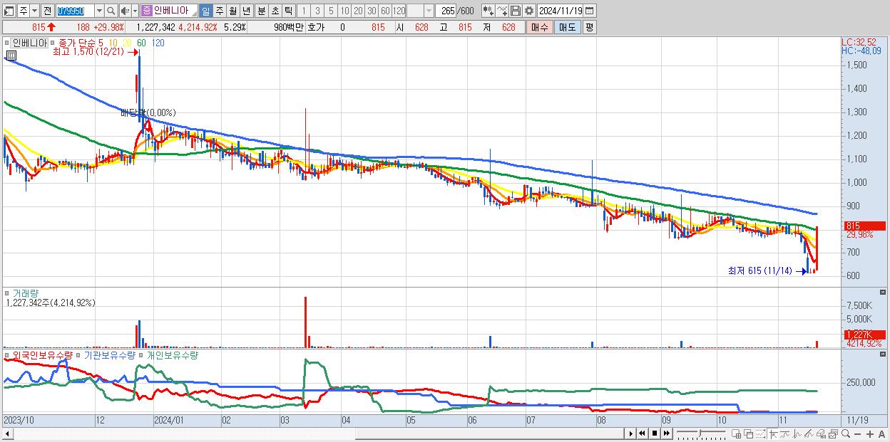 2.인베니아 815원 ▲ 29.98% (KOSDAQ, 079950)