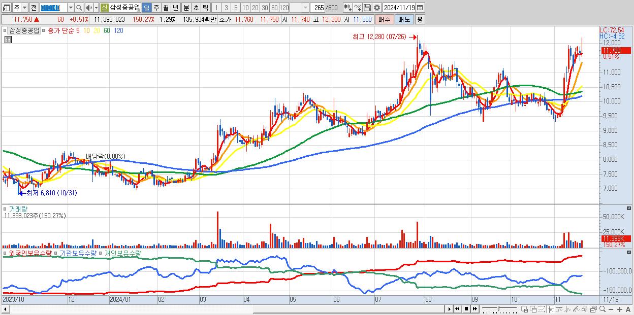 | 2024-11-12 | 970억 | -5억 | 385억 | -111억 | -1,239억 |