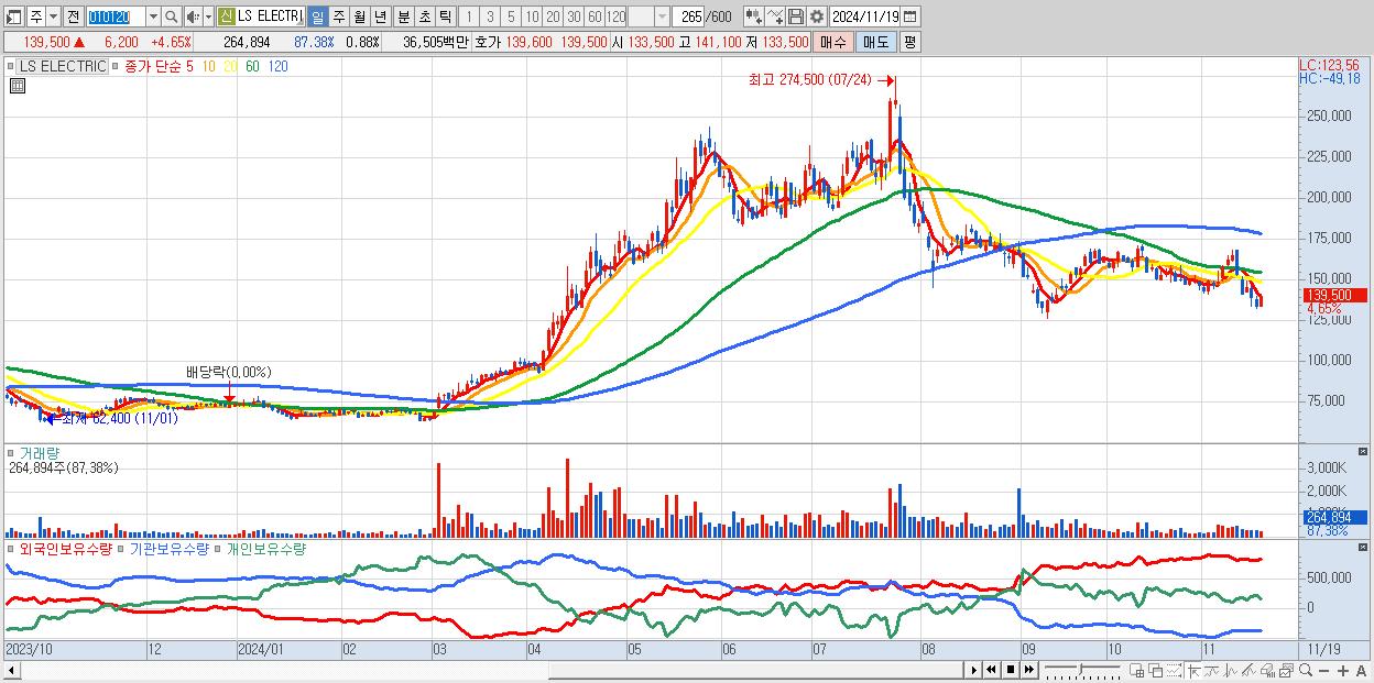 - LS ELECTRIC (139,500원 ▲ 4.65% , 시총: 41,850억, 외국인 순매수 거래금:52억)