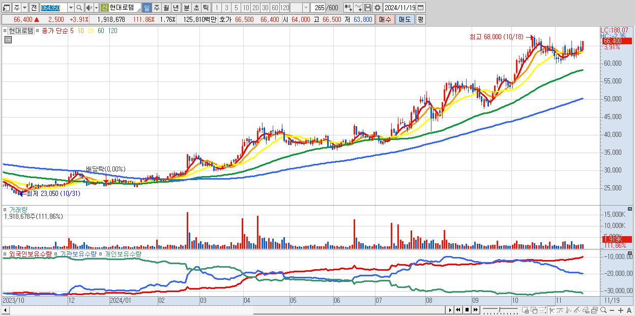 2.현대로템 66,400원 ▲ 3.91% (KOSPI, 064350)