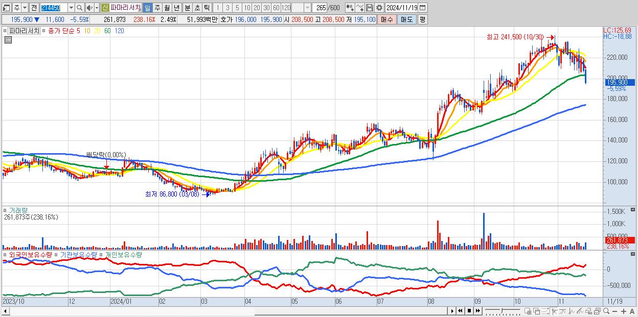 | 2024-11-11 | 147억 | -3억 | 124억 | -9억 | -259억 |
