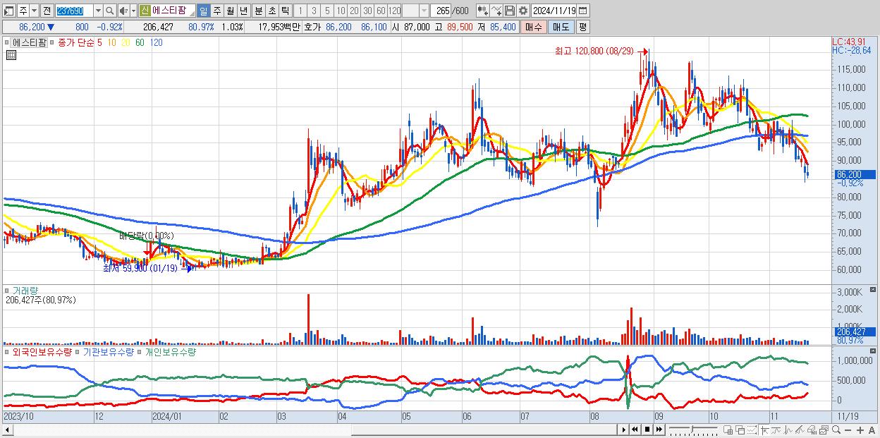 30.에스티팜 86,200원 ▼ -0.92% (KOSDAQ, 237690)