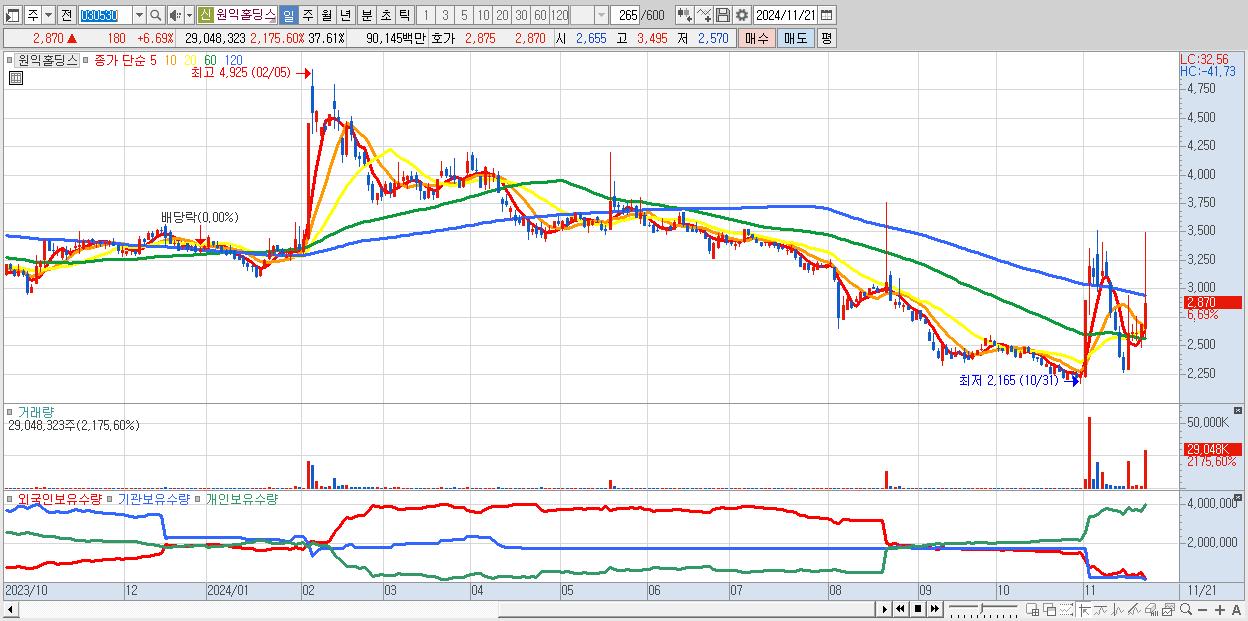 30.원익홀딩스 2,870원 ▲ 6.69% (KOSDAQ, 030530)