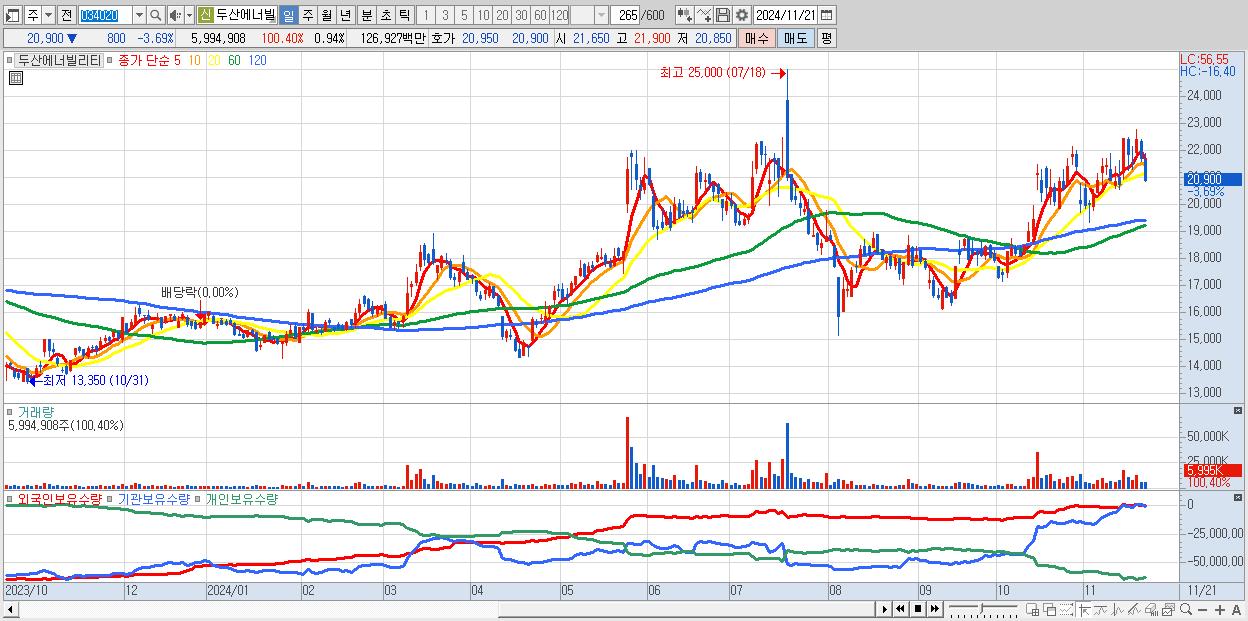 - 두산에너빌리티 (20,900원 ▼ -3.69% , 시총: 133,877억, 거래량: 5,994,908, 거래대금:1,269억)