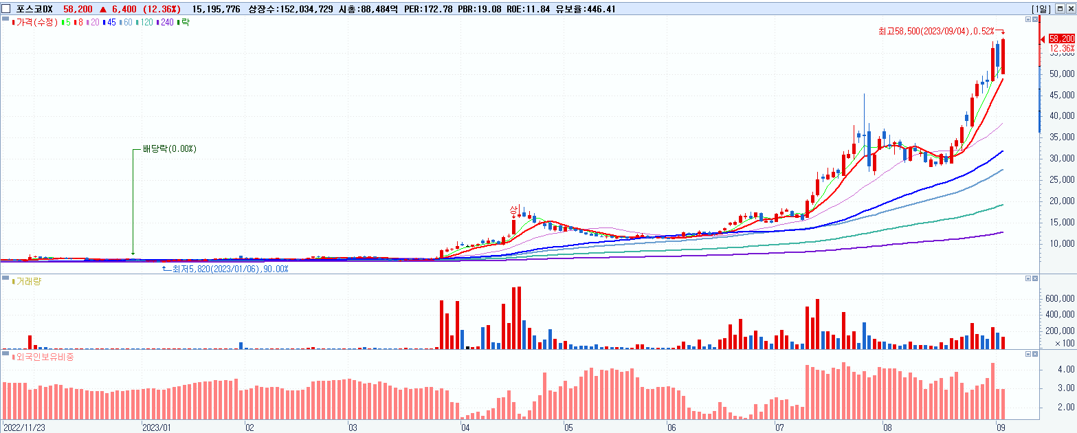 - 포스코DX (58,200원 ▲ 12.36% , 시총: 88,484억, 거래량: 15,195,776, 거래대금:8,302억)