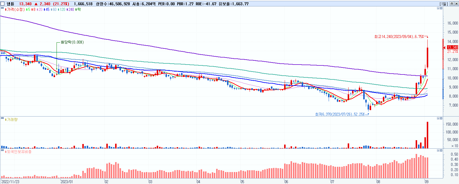 시총: 3,201억 거래량: 7,885,888 거래대금:304억