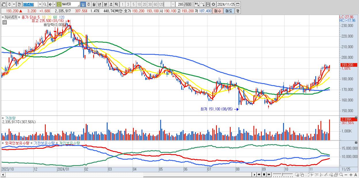 1.NAVER 193,200원 ▲ 1.68% (KOSPI, 035420)